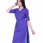SECT-WT WOMEN TOP PRINT- COBALT BLUE CHECK