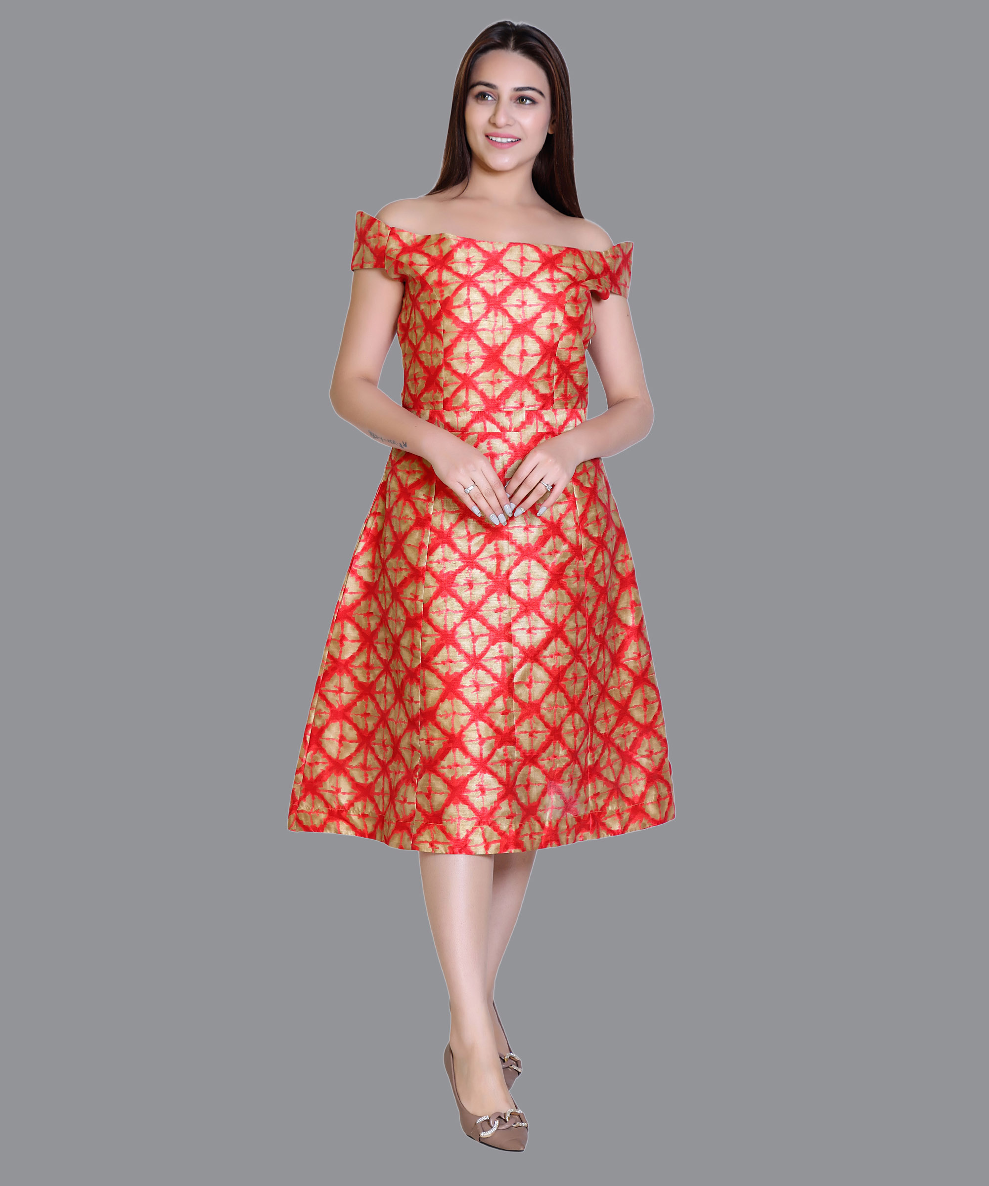 SECT-WWD WOMEN WESTERN DRESS PRINT – ORANGE GOLDEN